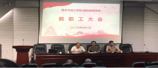 2023年9月2日上午10点,美术与设计学院/国际教育学院在美艺楼107召开新学期第一次教职工大会。会议由龙文书记主持。