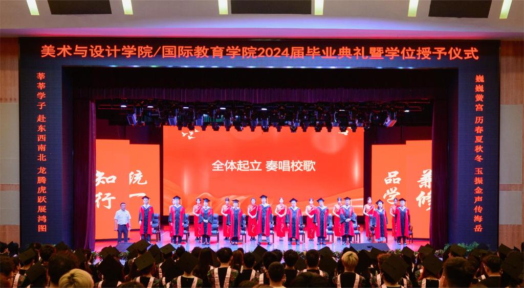 活动最后,由校歌呼应结束本次典礼。院党委副书记郑学达宣布:“美术与设计学院/国际教育学院2024届毕业典礼暨学位授予仪式圆满结束。”希望同学们带着母校的祝福,在新的征程中,笃行不怠,勇毅前行,并祝愿2024届毕业生鹏程万里,大展鸿图!