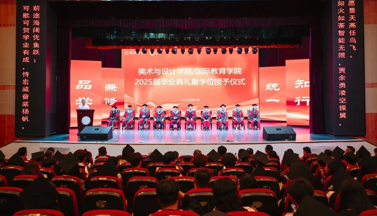 2025年6月13日上午,美术与设计学院/国际教育学院2025届毕业典礼暨学位授予仪式在音乐厅隆重举行。学院领导班子、专业教师代表与全体毕业生共同见证这一重要时刻,在庄重热烈的氛围中告别大学时光,以美院学子的身份开启职业新征程。