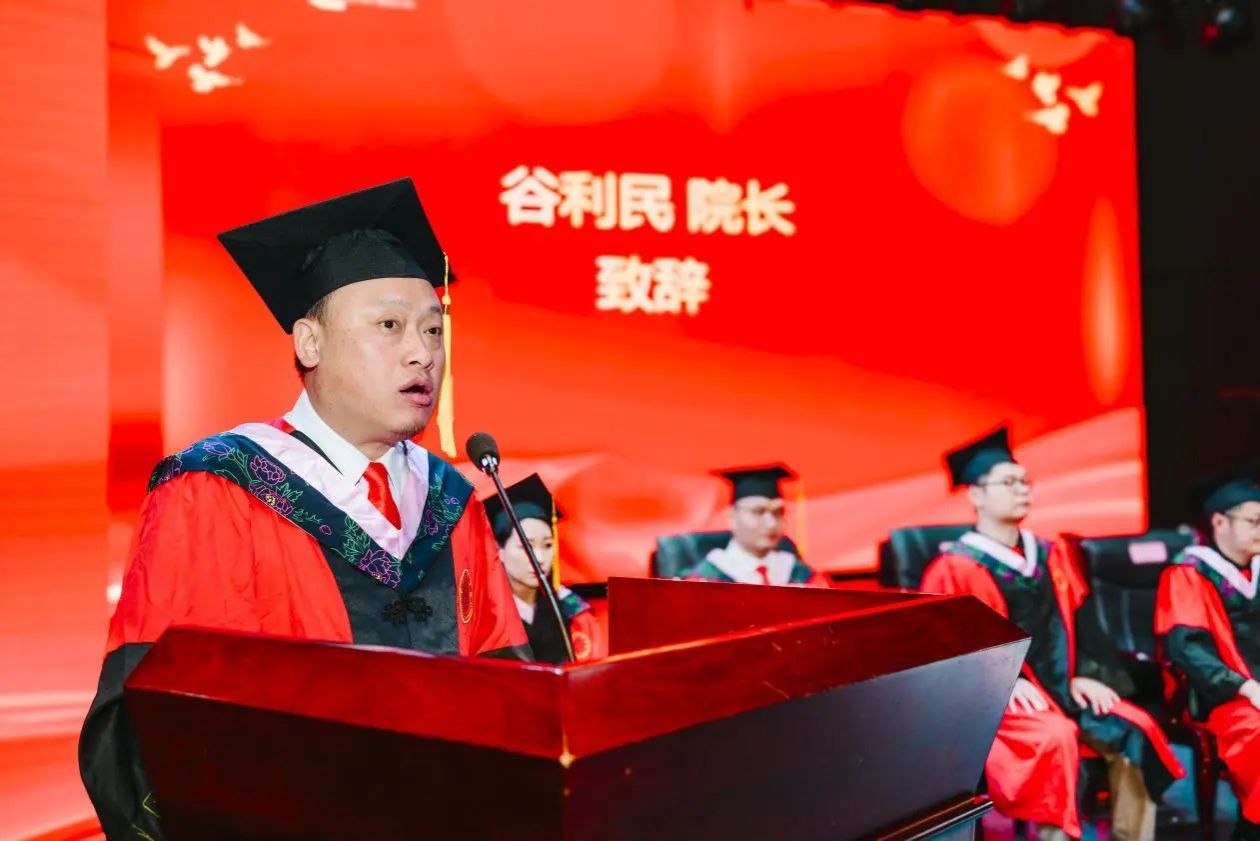 谷利民院长在致辞中回顾毕业生四年成长轨迹:从素描课堂的生涩临摹,到毕业设计展的创意绽放;从课程作业的反复打磨,到实际项目的落地实践。“艺术创作不是闭门造车,而是要用作品连接人心、服务社会。”他鼓励学子们秉持“以美育人”的初心,让作品既饱含艺术温度,又承载时代使命,在行业深耕中实现自我价值。