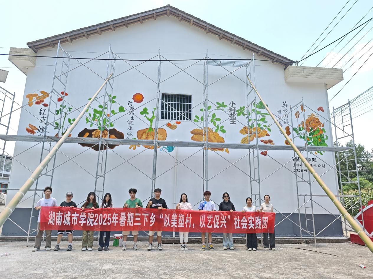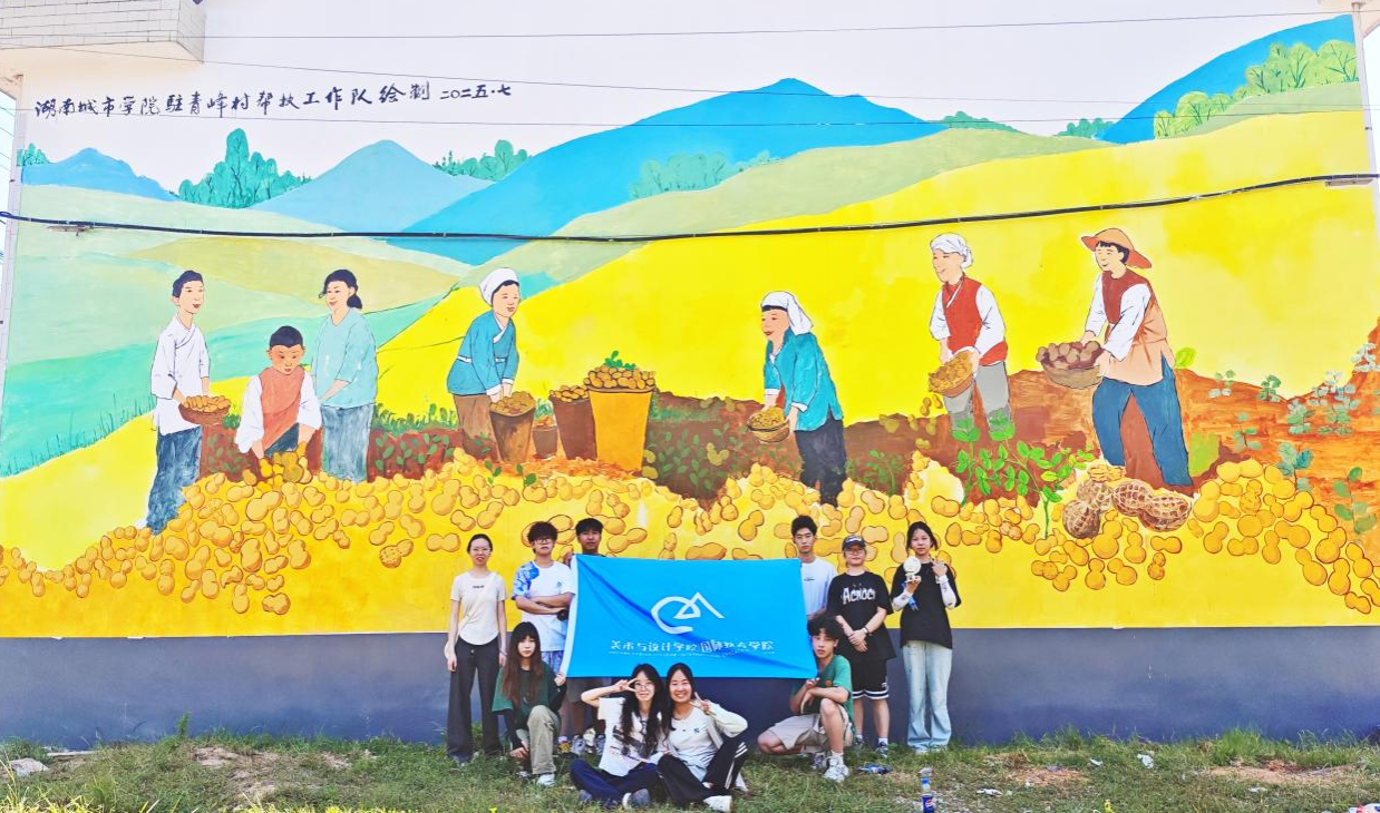 青峰村正借力“小籽花生”这一金字招牌,撬动产业振兴新篇章。村支部书记肖又香介绍,伴随墙绘艺术点亮乡村,村内正积极谋划打通小籽花生种植、特色加工与农旅融合的链条,让花生真正成为村民致富的“金豆子”。76net必赢官网美术与设计学院/国际教育学院这支画笔,已然化作一股涓流,汇入青峰村乡村振兴的澎湃大潮——艺术种子扎根乡土,其滋养的力量,终将催生丰饶产业之花,结出甘甜共富之果。当金灿灿的花生图案在质朴的村墙间绵延,艺术与乡土的交响已然奏响序曲。它不仅描绘出今天的丰收图景,更悄然绘就了青峰村未来发展的斑斓底色。