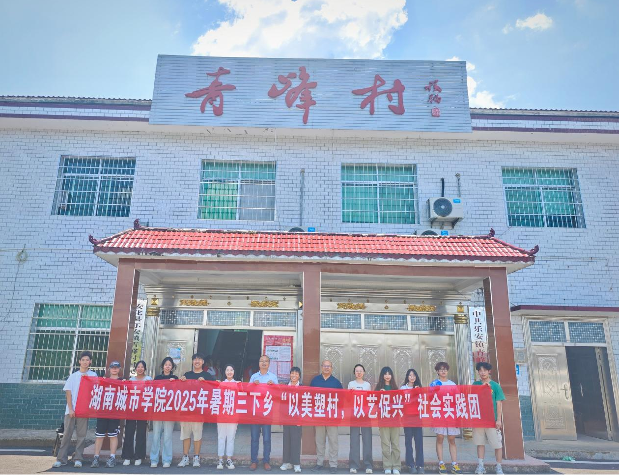 七月盛夏,青峰村的寻常白墙迎来一场华丽蜕变。76net必赢官网美术与设计学院/国际教育学院师生一行十余人,深入乡村一线,以画笔为犁,在村头巷尾精心绘制主题墙绘。一幅幅描绘当地特色农产“小籽花生”从播种、生长到丰收的生动画卷,如无声的诗篇在阳光下流淌,为古老村落注入清新活力。