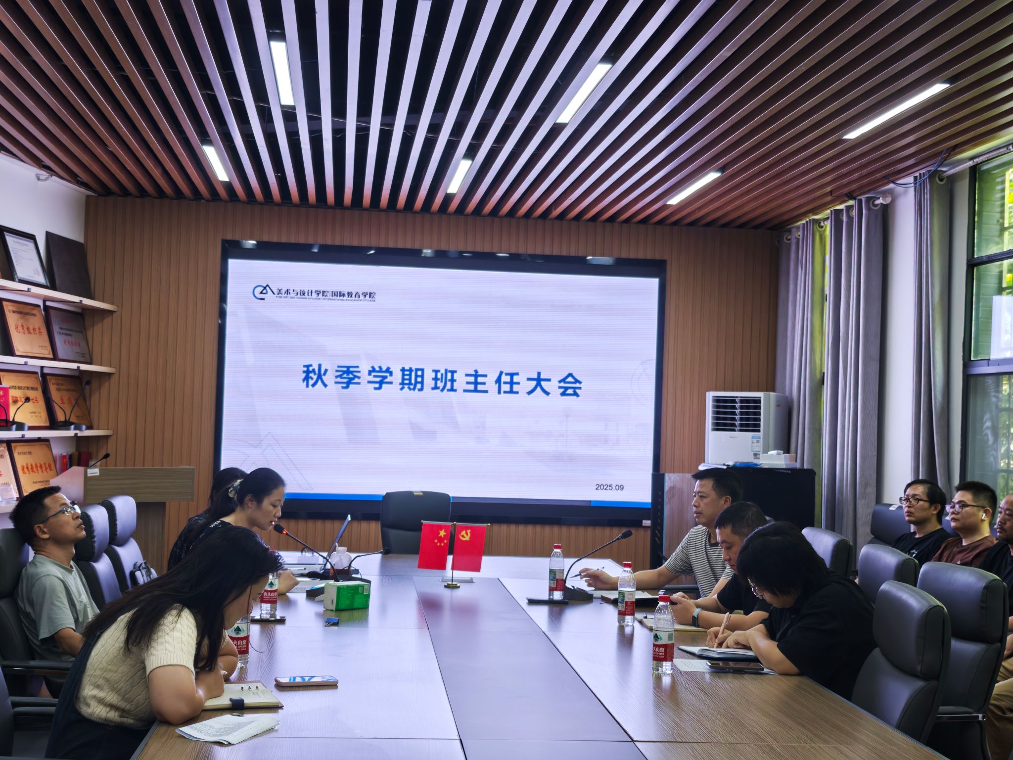 2025年9月5日上午,美术与设计学院/国际教育学院在美艺楼300会议室召开2025年秋季学期班主任大会。会议由院党委书记钟正武主持,院党政领导班子及班主任参加会议。此次会议旨在进一步加强学院学生工作管理,提升班主任队伍的专业素养与工作能力,确保新学期各项学生工作顺利开展。