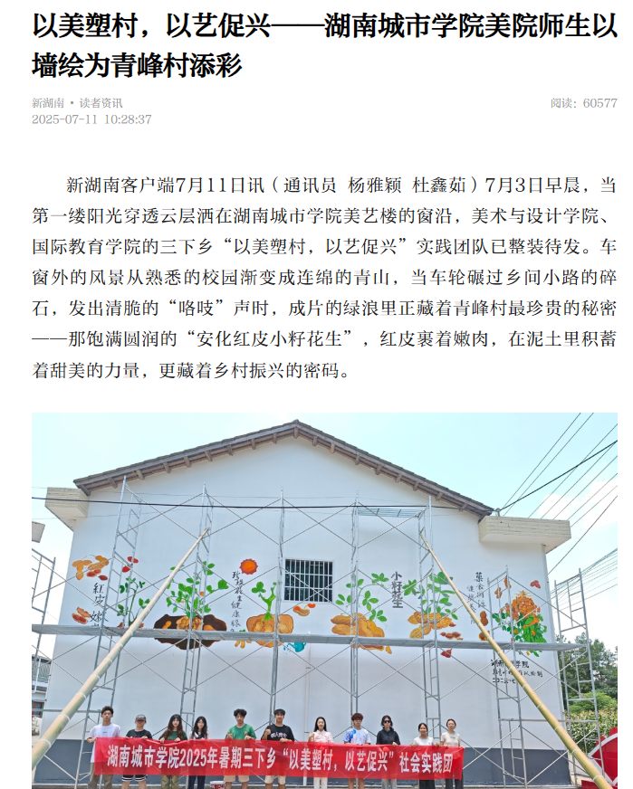 【新湖南】以美塑村,以艺促兴——76net必赢官网美院师生以墙绘为青峰村添彩