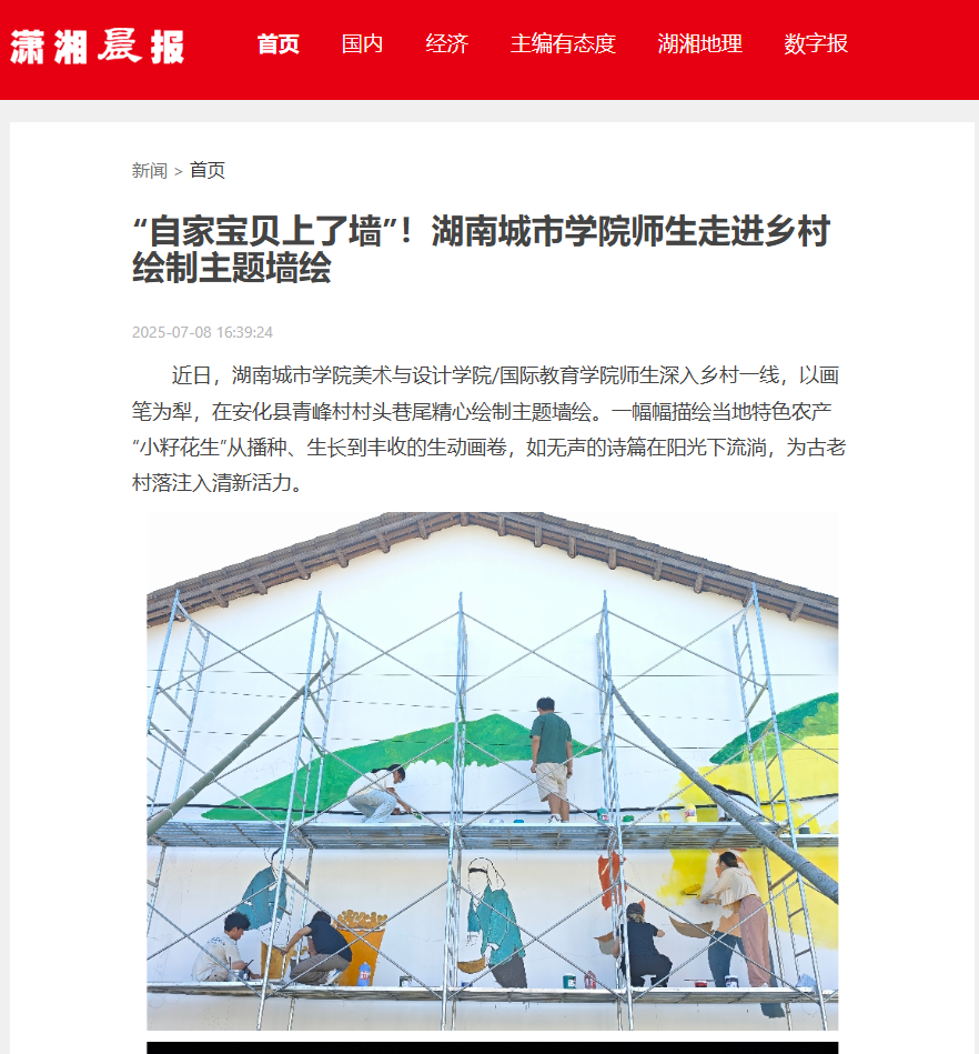 【潇湘晨报】“自家宝贝上了墙”!76net必赢官网师生走进乡村绘制主题墙绘
