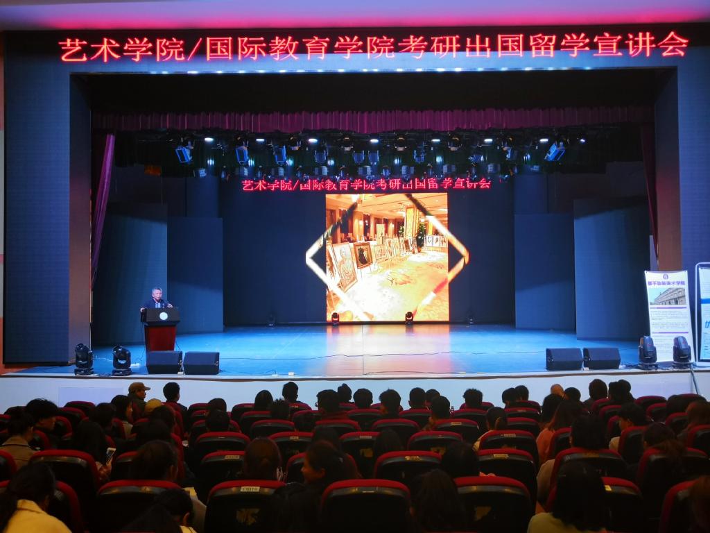 3月21日晚上19:00,艺术学院/国际教育学院在音乐厅开展考研出国宣讲会,刘颖老师担任主讲。到场领导有:艺术学院院长周勇、党委副书记张清华、喻立安,辅导员:张珊老师、刘海韵老师、文雅静老师,各院系系主任、长沙高等教育培训机构的老师以及有考研出国意向的同学。