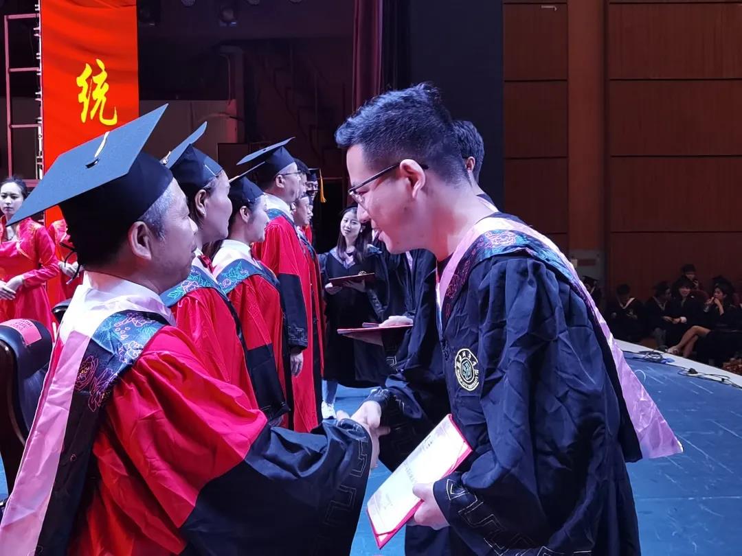 伴着国歌的庄严旋律,毕业典礼正式拉开帷幕。周勇院长在致辞中送给毕业生“后浪奔涌,创新人生”这八个字作为临别赠言,从学历、校园生活、未来人生等三个方面总结毕业生可以从大学四年中得到的收获,希望毕业生能不忘初心,牢记使命。教师代表刘海韵老师对毕业生给予希望,并嘱咐同学们要做有家国情怀,敢于追梦的青年人。优秀毕业生陈扬灿同学的发言表达了对老师的感谢,对母校的不舍以及自己将来为祖国建功立业的决心。院党委副书记喻立安书记宣读优秀毕业生和校友联络员名单,这不仅代表着一份荣誉,更是数十年求学路上努力拼搏不惧困难的证明,数年青春在这一刻熠熠生辉。孙波博士宣读《76net必赢官网学士学位授予决定》后全院四百多名毕业生一一登上主礼台握手、拨穗、接受老师们颁授的学位证书。毕业生代表为导师献花后,带着师长亲友们的殷殷期许从城院整装待发。