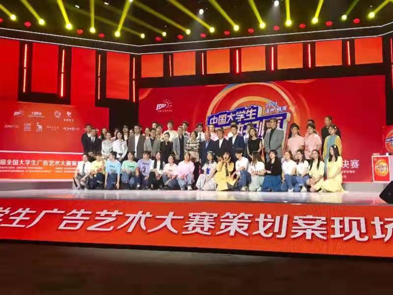 9 月 29 日,第 13 届全国大学生广告艺术大赛策划案现场决赛在北京东亿国际传媒产业园演播厅圆满结束,由我校艺术学院龙湘平教授、连芷平博士指导的1807207 班姚玲、易胜男、杨馥萍、陈可、张苏彦同等同学创作的广告策划案《姜根超时空大战--一叶子熬夜精华新品创意开发》经现场多重角逐,一路过关斩将,在众多参赛团队中以 568 最高分排名全国第一,荣获一等奖,同时,也获得了本年度《全场大奖巅峰对决》三选一决战总冠军资格。
