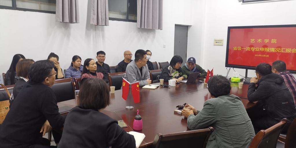 2021年11月1日晚上7点,我院在美艺楼416举行国家级、省级一流专业申报情况汇报会,院领导班子以及环境艺术系、美术学系骨干教师代表参会,会议由副院长孙波主持。