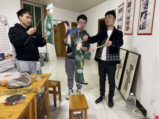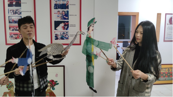 孙煊博和郭方楷在朱龙老师工作室学习纸影戏