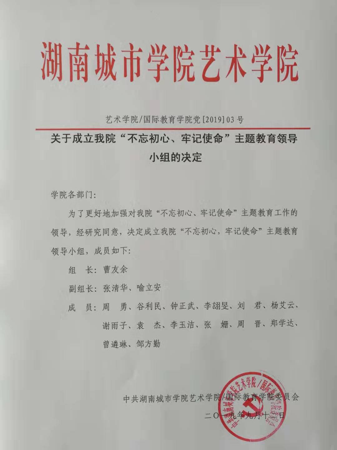 关于成立我院“不忘初心、牢记使命”主题教育领导小组的决定