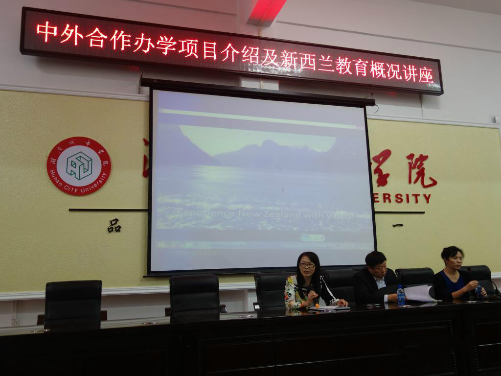 9月24日下午,新西兰维特利亚国立理工学院国际部副总经理迟美健女士一行来访我校,并在电信楼视频会议室开展了关于“中外合作办学项目介绍及新西兰教育概况”的专题讲座。讲座由我校国际交流处处长周桂平主持,美术与艺术设计学院院长龙湘平、院长助理孙红权、视觉传达系主任王勇等,以及视觉传达设计专业(中外合作办学)全体新生参加。