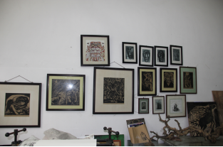 首先应把制作好的木刻版面用毛刷等清理干净,在版面上油墨前应该用干净的毛刷将版面上残留的木屑扫掉。