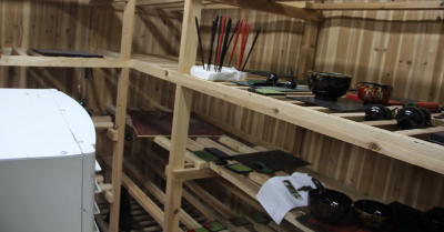 为了满足日常漆艺类课程和项目的开展和实践,漆艺实训室配备了用于大漆干燥的荫房,内设加湿器和加温器,能控制适当的温度和湿度,便于调控日常漆艺制作的干燥进程。同时,漆艺实训室还配备了晾晒架、打磨水槽、相关打磨和切割等工具,使得学生在实训室内,可以完成一整套的漆艺制作工序。