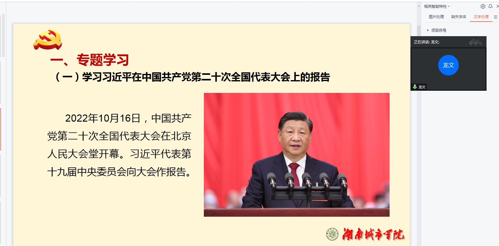 院党委书记龙文主持,院长钟正武带领全院党员教师重点学习了《习近平在二十届中共中央政治局常委同中外记者见面时的讲话精神》文件精神育。龙文带领大家认真学习了《习近平在中国共产党第二十次全国代表大会上的报告》、《习近平在参加党的二十大广西代表团讨论时的讲话精神》和警示教育。