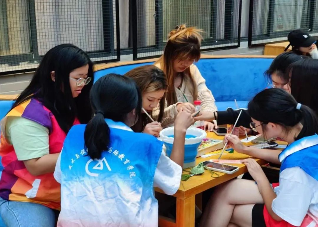 “以笔传情”环节,学生们在各种类型的祈福卡上写下了对亲人的祝福并将这份祝愿传递给他们,视觉传达专业的詹东婷同学说“在外地上大学是我第一次独自离开家这么长时间,每逢过节都很想家,但有时候想念的话总是到了嘴边又表达不出来,正好可以借这次机会表达对长辈的爱!”