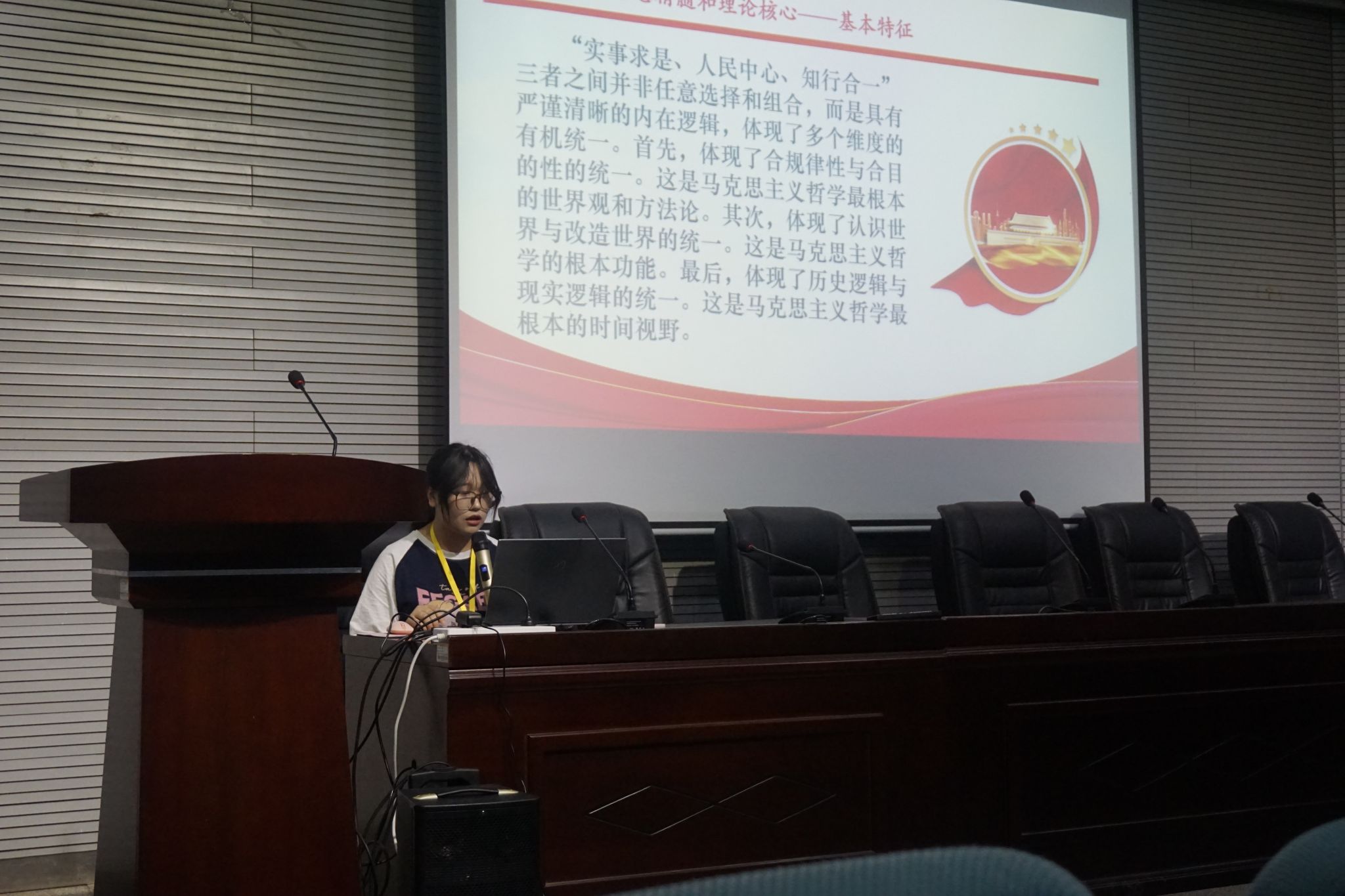在主持人陆安琪的讲解下,让同学们更加深刻地了解和学习了习近平新时代中国特色社会主义思想的重要内容,从而增强同学们对党的领导的认同感和拥护度,坚定走中国特色社会主义道路的信念。
