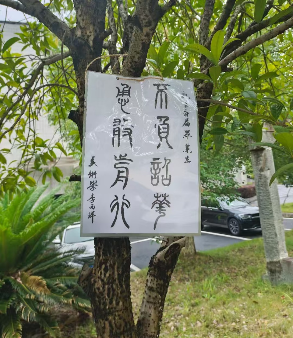 绘制完成后,所有“祝福”卡被统一展示在美艺楼前的坪地上,形成了一道亮丽的风景线。毕业生们纷纷驻足欣赏,有的感动落泪,有的则露出了会心的微笑。这些卡片不仅是对他们大学生活的回顾与总结,更是对他们未来人生的美好期许。