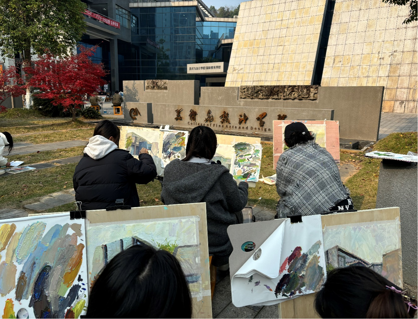 活动于12月6日在美艺楼前广场隆重举行,现场气氛热烈而充满活力。来自我院的数百名新生,在学院师生的共同见证下,以美艺楼为背景,用画笔和颜料,共同绘制出一幅幅色彩斑斓、创意无限的画作。