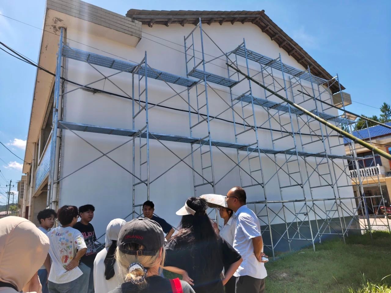 当天下午,驻村第一书记王立刚和村支部书记肖又香带领实践团队对青峰村进行实地考察。在考察过程中,团队成员深入了解当地的村容村貌和文化特色,为后续的墙绘创作收集素材、构思创意。考察结束后,实践团队迅速投入到创作工作中,正式拉开了墙绘工程的序幕。