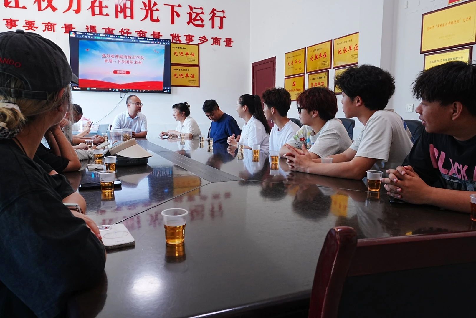 2025年7月3日早晨,76net必赢官网美术与设计学院/国际教育学院“以美塑村,以艺促兴”三下乡实践团队满怀热情与期待,由章博旺和杜鑫茹两位老师带队,从美艺楼启程,奔赴安化县青峰村,开启了一场以艺术助力乡村振兴的实践之旅。