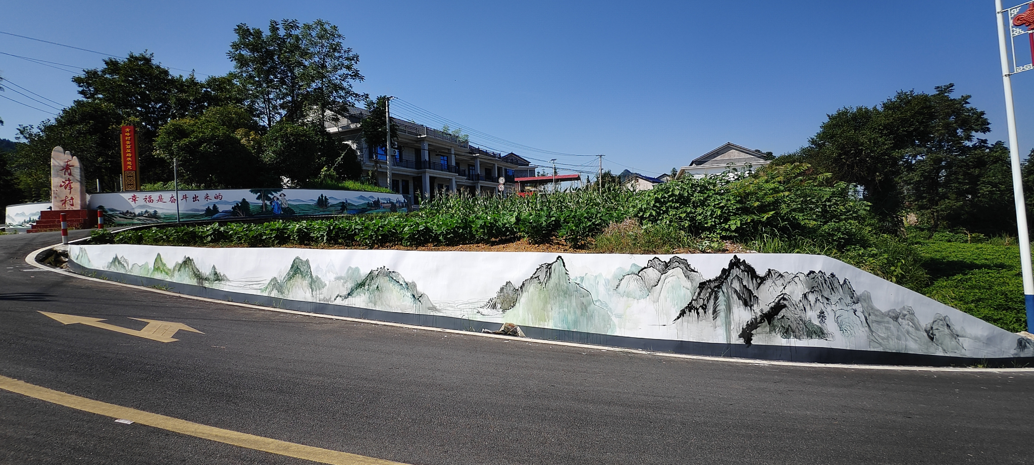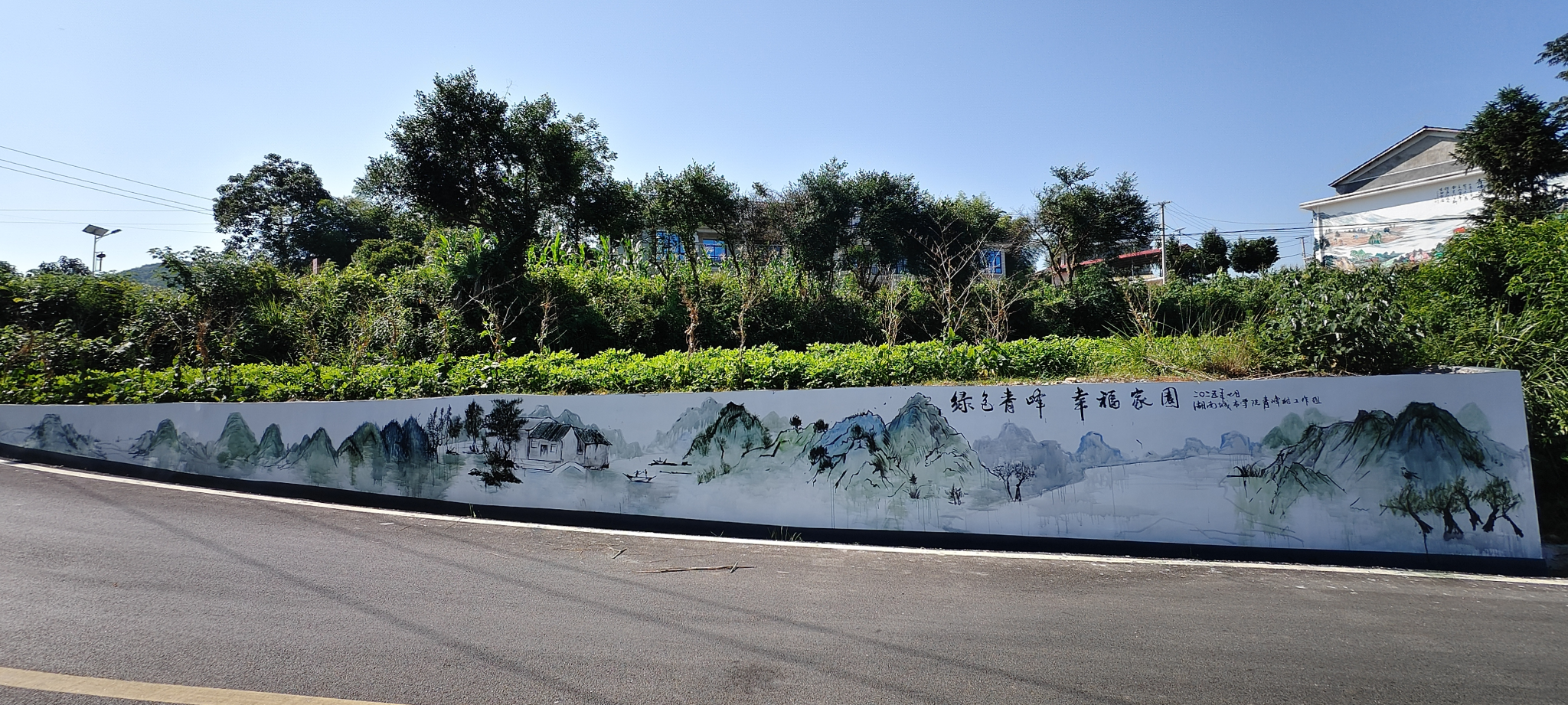 2025年7月4日,我院“以美塑村,以艺促兴”三下乡实践队的师生们踏着清晨五点的朝阳开始了今日在湖南省益阳市安化县青峰村的墙绘活动。他们以笔墨为媒、墙体为卷,在青峰村的墙面间挥毫创作,用青春色彩为这片山水浸润的土地注入了新的活力。