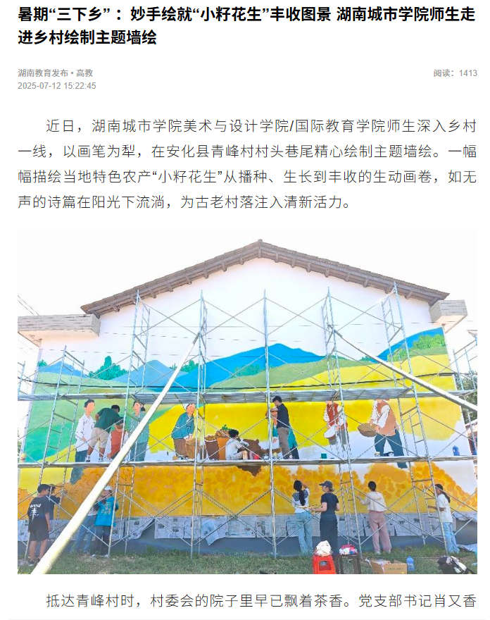 【湖南教育发布】暑期“三下乡” :妙手绘就“小籽花生”丰收图景 76net必赢官网师生走进乡村绘制主题墙绘
