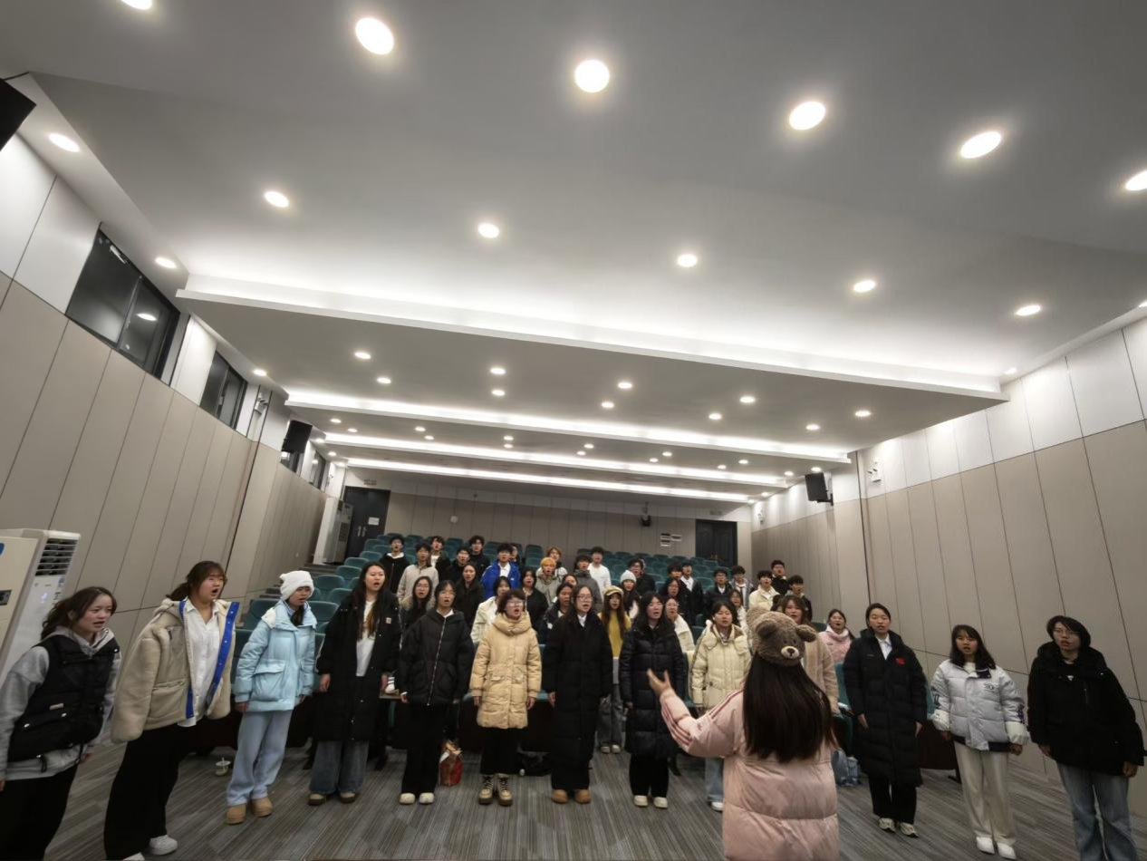 自比赛筹备以来,学院高度重视,精心选拔参赛队员,组建了一支由50余名美院学生共同参与的合唱队伍。为呈现最佳演出效果,队员们利用课余时间刻苦排练,声乐老师悉心指导发声技巧与情感表达,团委指导老师全程陪同协调,从声部合练到队形编排,从服装搭配到细节打磨,每一个环节都凝聚着团队的心血与汗水。大家心往一处想、劲往一处使,在反复打磨中校准音准、凝聚默契,在旋律交融中体悟初心使命、厚植家国情怀。