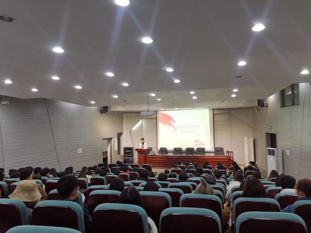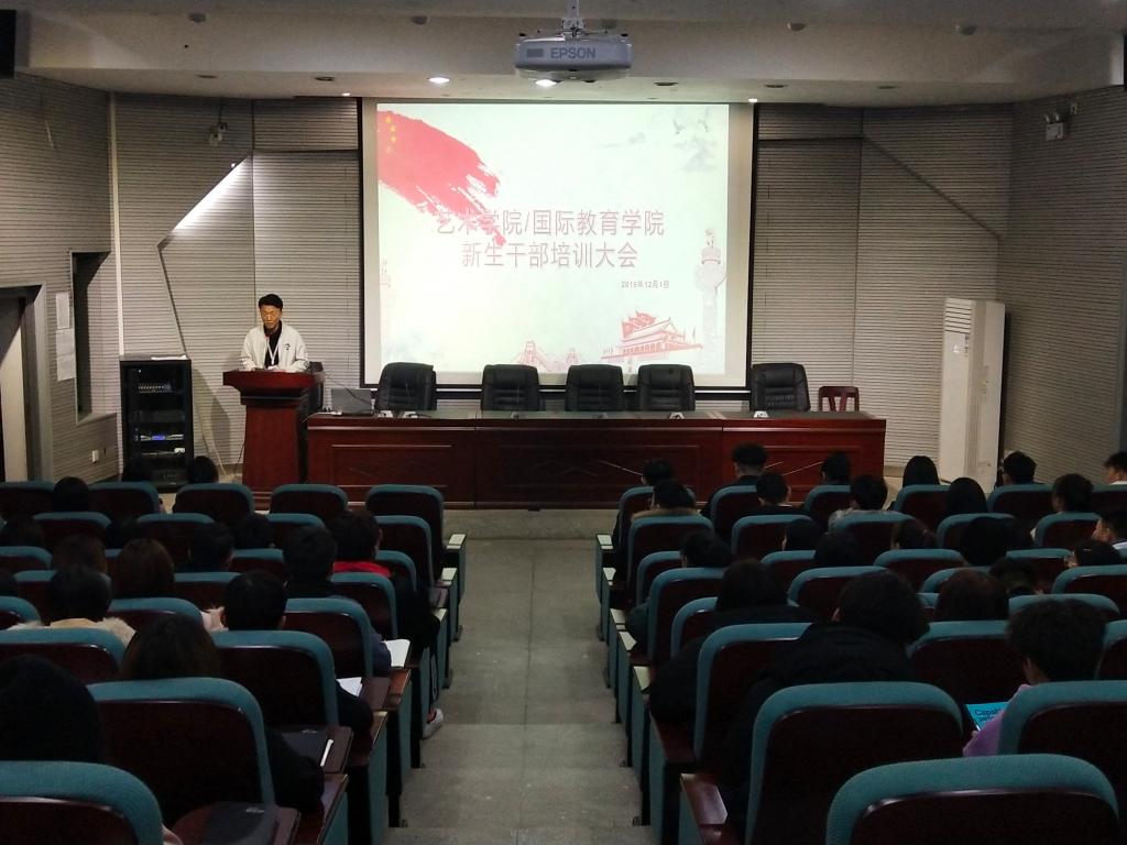 2019年12月1日下午15:00,艺术学院/国际教育学院新一届团学干部培训大会在美艺楼107报告厅举行,出席本次会议的有:校党委宣传部王静老师、院团委书记李玉洁老师以及全体团委学生会干部。