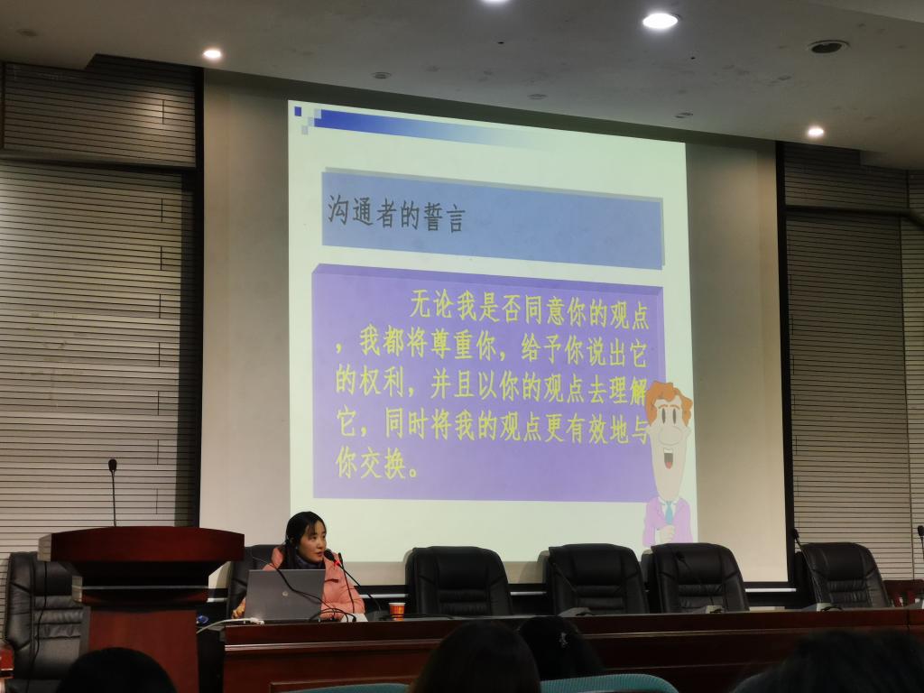 接着,由李玉洁老师授课《如何当好一名学生干部》,李玉洁老师指出高校学生会干部作为学校与广大同学之间的沟通和交流的纽带和桥梁,是学校管理系统的重要组成部分,学生会干部要起带头作用、助手作用、桥梁作用、凝聚作用、服务作用。最后李玉洁老师对团委学生会干部提出下面四点要求:一、学生干部首先要树立良好形象,起到带头作用;二、学生干部应该做到一切为服务同学为目的;三、学生干部应具备基本的能力素质和意识;四、学生干部应正确处理好工作和学习之间的关系。