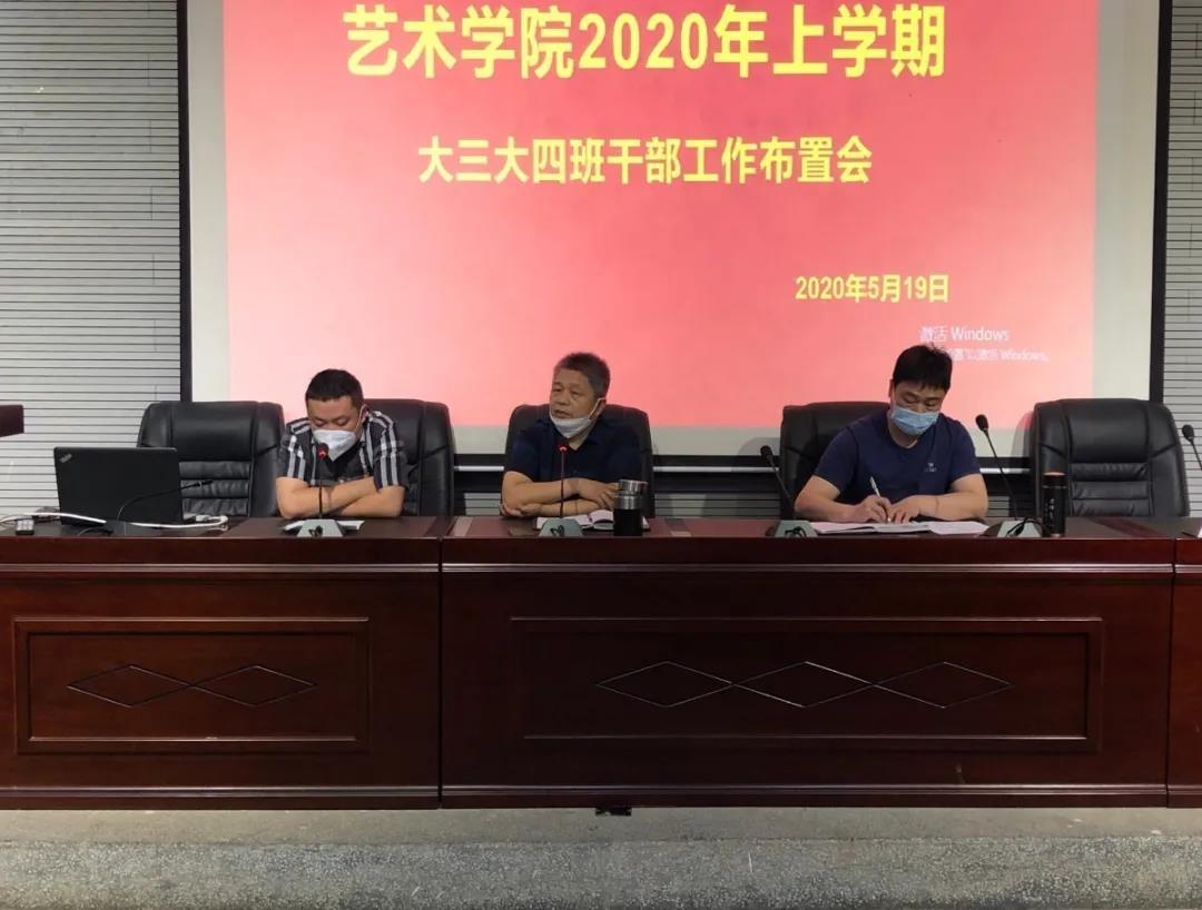 为做好我院2020年春季开学各项工作,切实提高班级管理实效,加强学校疫情防控,营造和谐、积极、奋进的校园生活。我院于5月19日上午9:30在美艺楼107报告厅召开2020年上学期大三、大四班干部工作布置会。院党委书记曹友余、党委副书记喻立安、学工办主任郑学达、团委书记邹方勤、辅导员张姗老师以及大三、大四年级各班班长及负责人参加此次会议。