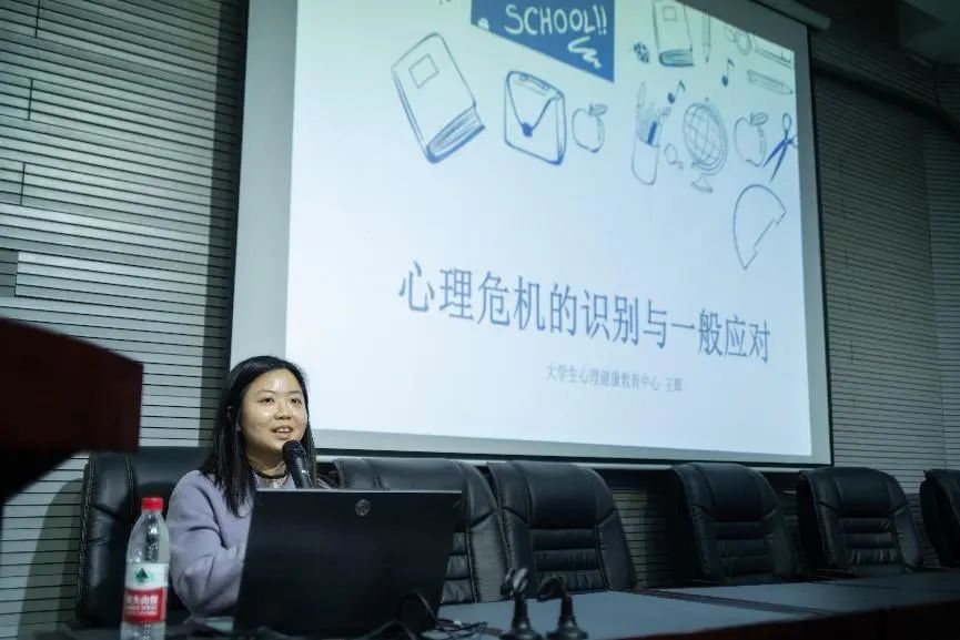 本次大会由大学生心理健康教育中心王晖老师为心理部委员、朋辈辅导员、各班心理委员及寝室长进行心理教育培训指导。会议强调了学生心理健康工作的重要性,指出各位委员需要及时排查同学的心理健康情况,如有异常,第一时间向班级辅导员和班主任上报。会议围绕着学生心理健康危机的识别与应对、如何扮演维护同学心理健康安全的角色、如何帮助同学改善心理疾病等方面进行了详细讲解。