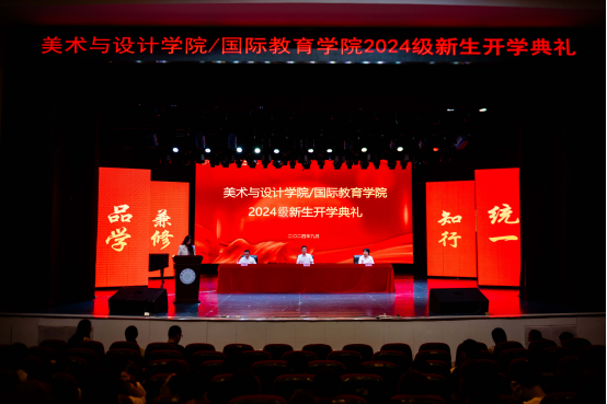 为做好2024级新生入学教育工作,激励新生以积极饱满的精神开启大学新生活。美术与设计学院/国际教育学院于9月10日8:30在音乐厅举行2024级新生开学典礼,出席本次典礼的有学院党政班子成员、各系室中心主任、支部书记、教授博士代表、新生辅导员、班主任以及2024级全体新生与新生助班。本次典礼由学院党委副书记郑学达主持。