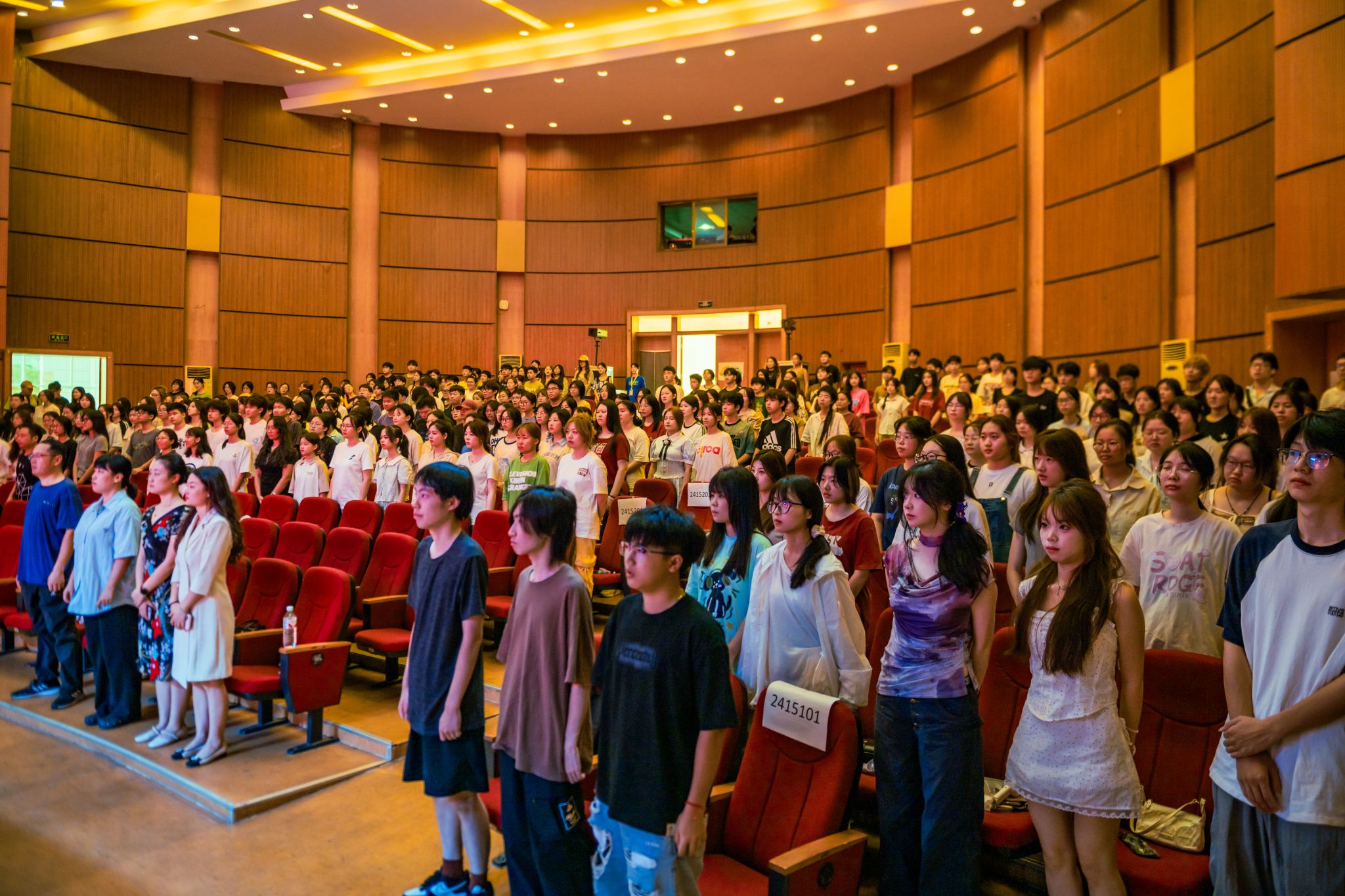 在开学典礼前,2024级新生给全体老师送上教师节祝福。