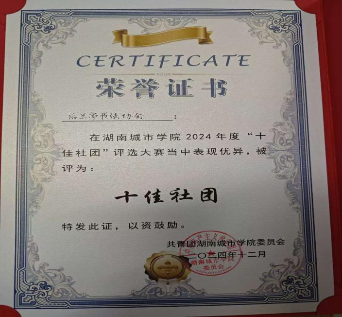 为促进校园文化多元化发展,提升学生综合素质,为学校形成良好的社团活动氛围奉献力量。2024年12月12日,我院后兰亭书法协会和世萌动漫社凭借生动的演讲、才艺展示和互动体验荣获我校2024年度“十佳社团”称号。