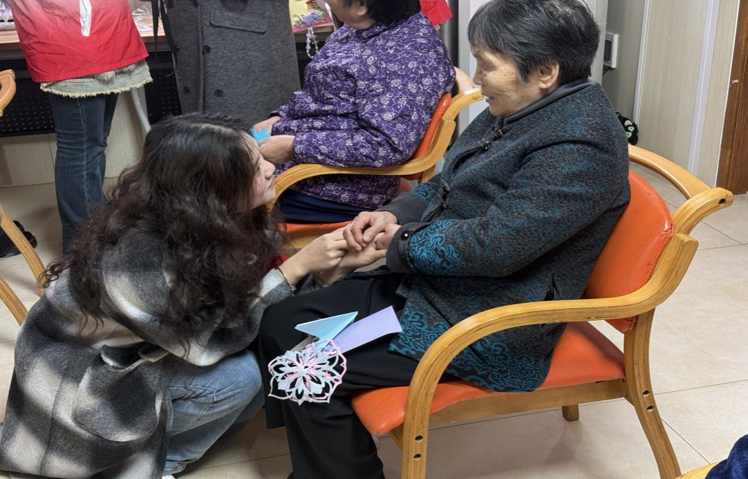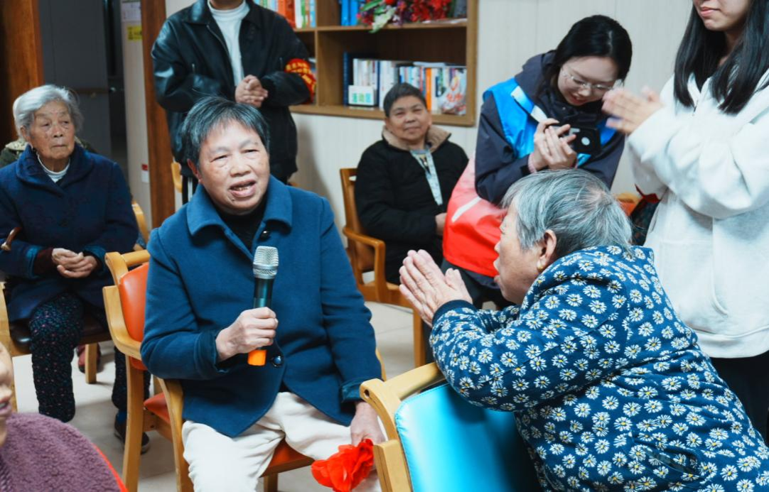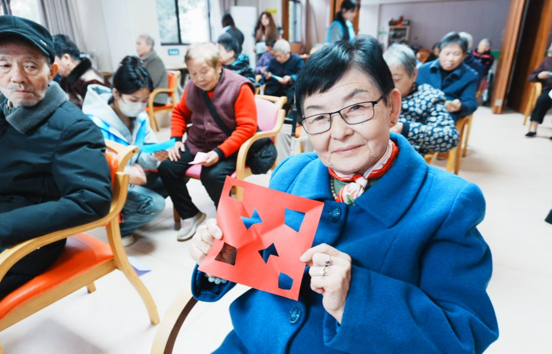 活动现场暖意融融,经典歌曲传唱勾起岁月回忆,趣味互动游戏点燃热情,一对一剪纸共创传递贴心温暖。志愿者们通过趣味互动、手工体验等活动,与老人们亲切互动。