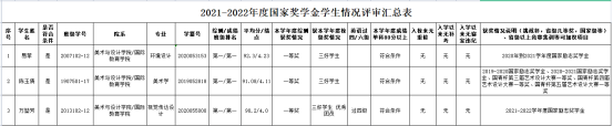 我院2021-2022学年国家奖学金评定工作于9月中旬开始启动。本着公开、公平、公正、择优的原则,根据本人申请、班级推荐、院评审工作领导小组审核评定等程序,决定推荐易菲等三位同学为我院参评2021-2022学年国家奖学金人员,详情如下: