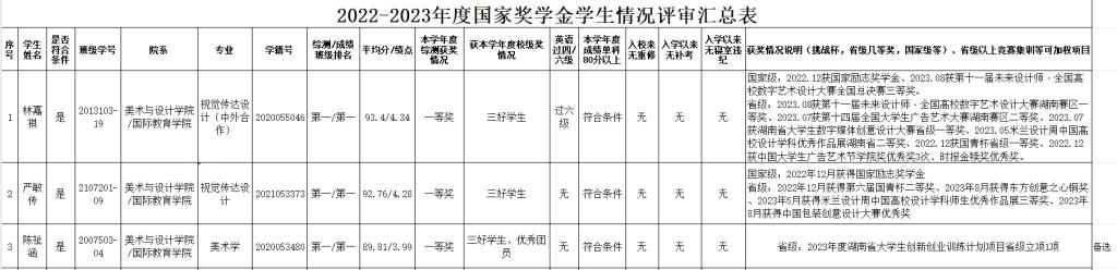 我院2022-2023学年国家奖学金评定工作于9月中旬开始启动。本着公开、公平、公正、择优的原则,根据本人申请、班级推荐、院评审工作领导小组审核评定等程序,决定推荐林嘉祺、严敏传、陈祉涵三位同学为我院参评2022-2023学年国家奖学金人员,详情如下: