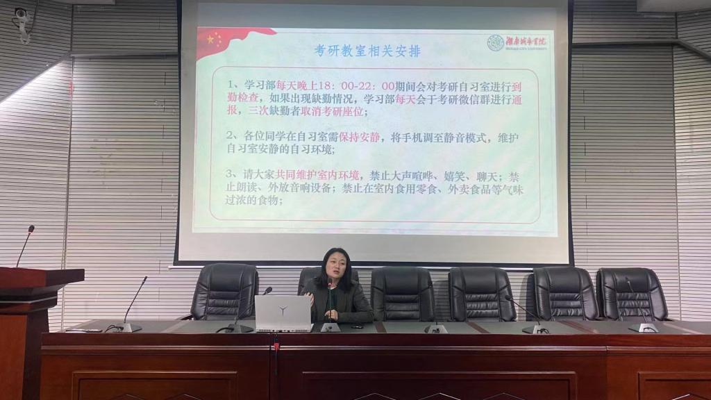 会议开始,由李玉洁老师介绍了关于考研准备工作问题。首先对择校方面进行讲解,告诉同学们在选择自己心仪学校之前要进行地区选择,同时也要提前了解好各个学校的招生标准。李老师细心地向同学们解答有关考研的问题使同学们有了更深一步的了解